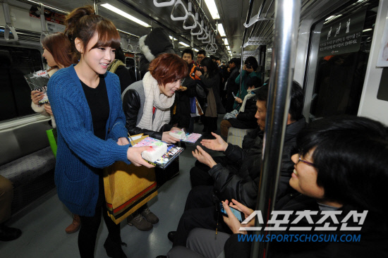 '지하철 공약' 수행중인 티아라. 스포츠조선DB