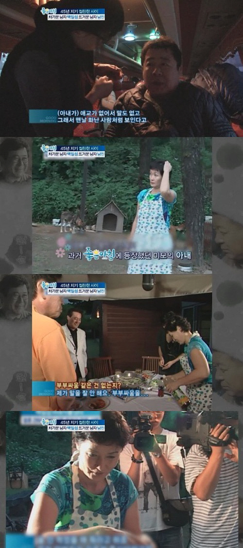 이어 과거 SBS '좋은아침'을 통해 모습을 드러냈던 미모의 아내 모습이 공개됐다. 백일섭 의 아내는 집에서 묵묵히 음식을 준비하며 가정적인 모습을 보였다.
