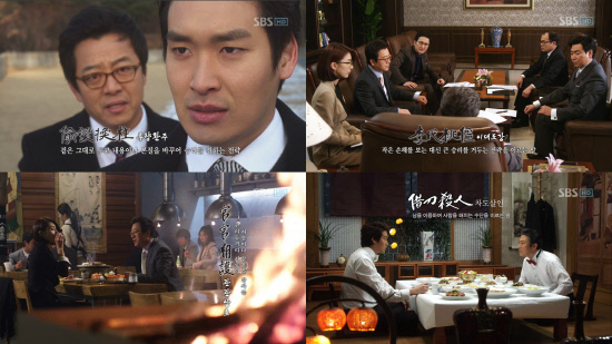 이어 지난 10일 4회 방송분에서 범증(이기영)은 천하그룹 비서실장인 모가비(김서형)와 술을 마시면서 서로의 허물이나 잘못을 감싸며 서로 돕는다는 뜻의 '관관상호(官官相護)'라는 고사성어를 선보였다. 이때 범증은 모가비에게는 핀잔을 들었지만, 이후 그는 모가비대신 항우와 손을 잡는 계략을 실행에 옮겼다.