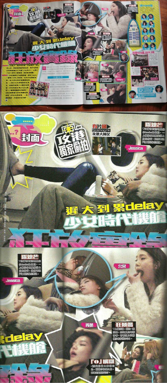 걸그룹 소녀시대 멤버의 기내 모습이 적나라하게 담긴 파파라치 사진이 공개됐다.
