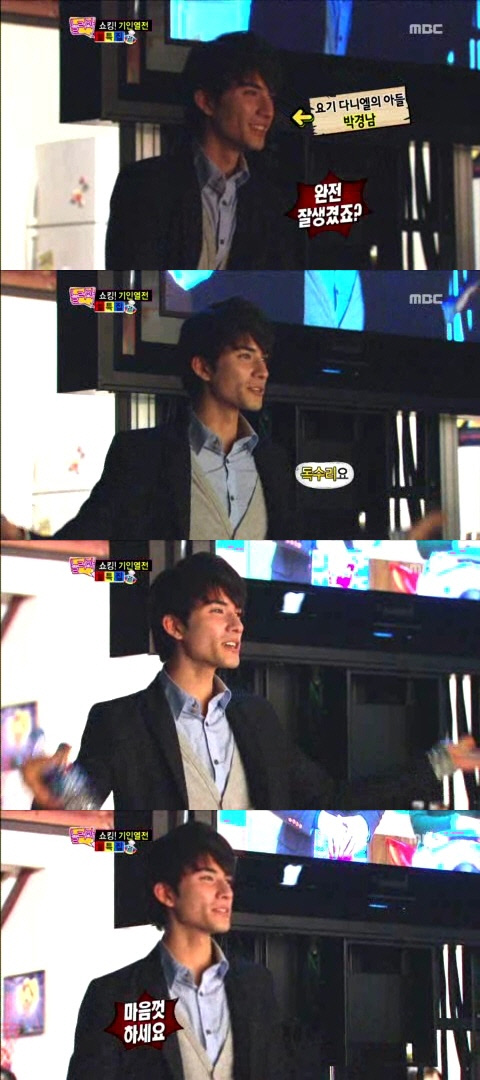 설 특집 '쇼킹 기인열전'이란 주제로 진행된 23일 방송에서 요기 다니엘은 연체동물을 능가하는 유연한 몸으로 놀라운 묘기들을 선보였다. MC 유재석은 요기 다니엘에게 묘기를 부탁하기 전에 스튜디오 밖에서 촬영을 지켜보던 요기 다니엘의 아들 박경남씨에게 "아버님께 부탁드려도 되겠냐"고 물었다. 박경남씨는 "마음껏 하세요"라고 흔쾌히 답했을 뿐 아니라, 심지어 독수리 묘기를 추천하기도 했다. 이때 카메라에 잡힌 박경남씨의 잘생긴 외모를 보며 MC와 패널들은 "정말 잘생겼다" "훈남이다"라며 감탄을 아끼지 않았고, 요기 다니엘은 흐뭇한 미소를 지었다.