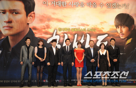 종합편성채널 TV조선의 창사특집 블록버스터 드라마 '한반도'의 제작발표회가 26일 임피리얼팰리스 호텔에서 열렸다. '한반도'는 남북 합작 대체에너지 개발과 통일 논의가 가속화되는 미래의 한반도를 배경으로 분단의 현실속에서 펼쳐지는 남한의 남자(황정민)와 북의 여자 진재(김정은)의 애틋한 사랑이야기를 그려낸다. 이에 한반도 최초의 통일 대통령을 둘러싼 긴장감 넘치는 스토리까지 더해질 예정이다. 이형민 감독과 모든 출연진이 포토타임을 갖고 있다. 최문영 기자 deer@sportschosun.com