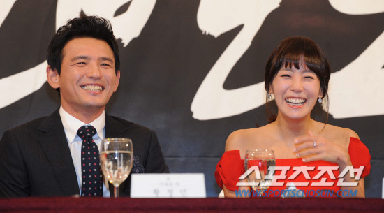 종합편성채널 TV조선의 창사특집 블록버스터 드라마 '한반도'의 제작발표회가 26일 임피리얼팰리스 호텔에서 열렸다. '한반도'는 남북 합작 대체에너지 개발과 통일 논의가 가속화되는 미래의 한반도를 배경으로 분단의 현실속에서 펼쳐지는 남한의 남자(황정민)와 북의 여자 진재(김정은)의 애틋한 사랑이야기를 그려낸다. 이에 한반도 최초의 통일 대통령을 둘러싼 긴장감 넘치는 스토리까지 더해질 예정이다. 주인공 황정민과 김정은이 기자간담회 중 환하게 웃고 있다. 최문영 기자 deer@sportschosun.com