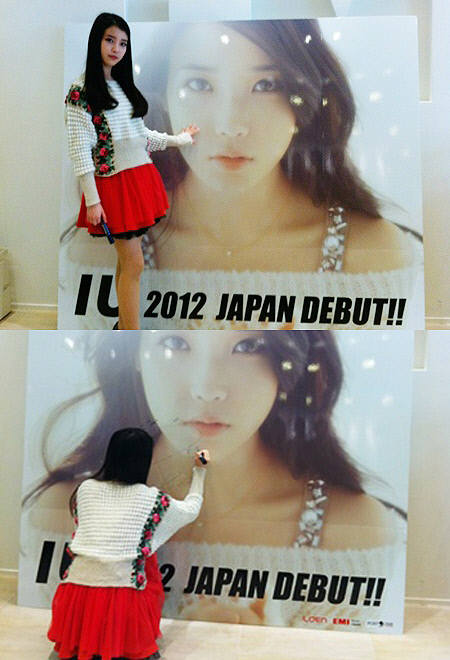26일 아이유의 소속사 로엔엔터테인먼트의 공식 트위터에는 "아이유가 일본에서 보내온 인증샷 공개!! 일본 데뷔의 첫걸음에 선 자랑스러운 아이유에게 많은 응원 보내주세요"라는 글과 함께 사진이 게재됐다.