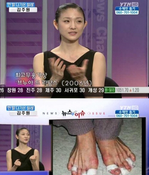국립발레단 수석 무용수 김주원은 28일 방송된 MBC 라디오 '손석희의 시선집중'에 출연, "발레를 관둘 정도의 부상을 입은 적 있다"고 밝혔다. 그는 "2006년쯤 되는 것 같다. 족적근막염이란 병이 있는베 발바닥의 통증을 참으며 4~5년 쯤 춤을 추던 때였다. 토슈즈를 못 신는다는 얘기를 들었다"며 "나에겐 사형선고 같은 것이었다. 좌절하다가 유도나 레슬링 하는 선수들이 대체 근력을 키워 인대가 끊어져도 운동을 한다는 사실을 알았다. 그래서 발레를 그만 둘 생각으로 7~8개월 휴직계를 쓰고 체육관을 찾아갔다"고 말했다. 이어 "그렇게 운동을 하면서 1년쯤 지나니 괜찮아졌다. 아직 완치된 것은 아니지만 그렇게 해서 재기를 했고, 최고 무용상도 받았다"고 전했다.