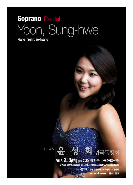 소프라노 윤성회의 공연은 오는 2월3일(금) 저녁 7시30분 광진문화예술회관 나루아트센터 대극장에서 열린다.