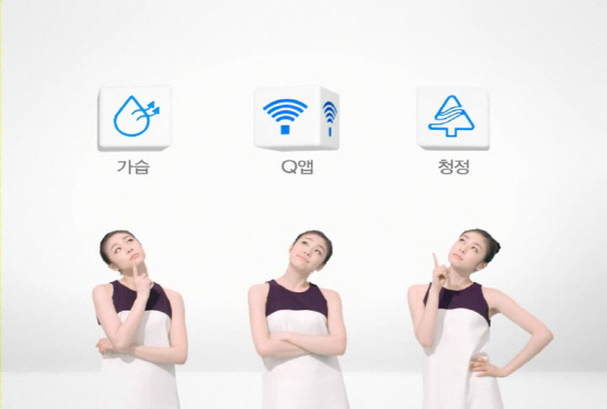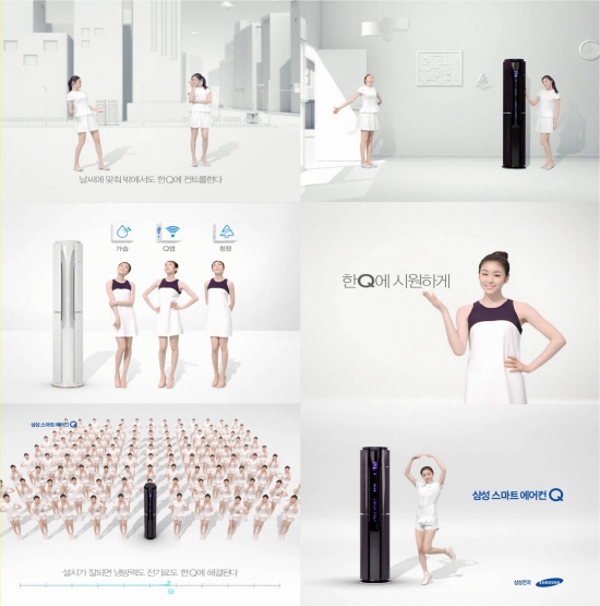 최근 4년 연속 삼성 에어컨 모델로 발탁된 김연아는 지난 28일부터 온에어 된 삼성 스마트에어컨Q의 CF를 통해 주요 스마트 기능을 누구나 알기 쉽게 소개하고 있다. 특히 '한Q에 시원하게' 라는 주요 메시지를 강조하기 위해 일인 다역의 연기까지 자연스럽게 선보이는 등 물오른 연기력을 과시했다.