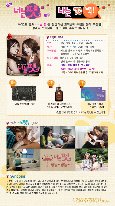 2월 22일까진 김윤석, 유아인 주연의 '완득이' VOD를 구매하면 추첨을 통해 1등 40명에게 CJ 5만원권 상품권, 2등 200명에게 영화 '화차' 예매권을 선물한다. 맷 데이먼, 기네스 펠트로 주연의 '컨테이전' VOD 구매고객은 추첨을 통해 10명에게 서바이벌 킷을 증정한다. '완득이' VOD 당첨자는 3월 6일, '컨테이전' VOD 당첨자는 3월 14일 씨앤앰 홈페이지에 공개한다.