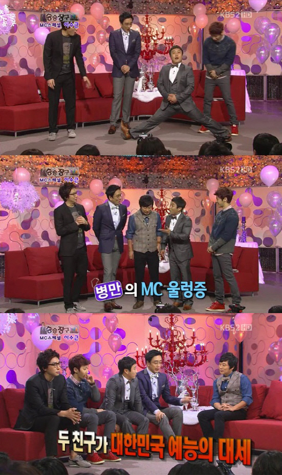 개그맨 김병만이 절친 이수근의 특집으로 꾸며진 KBS2 '승승장구'의 일일 MC로 나서 화제를 모았다.