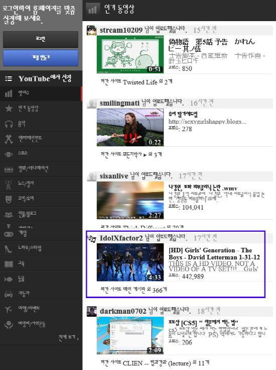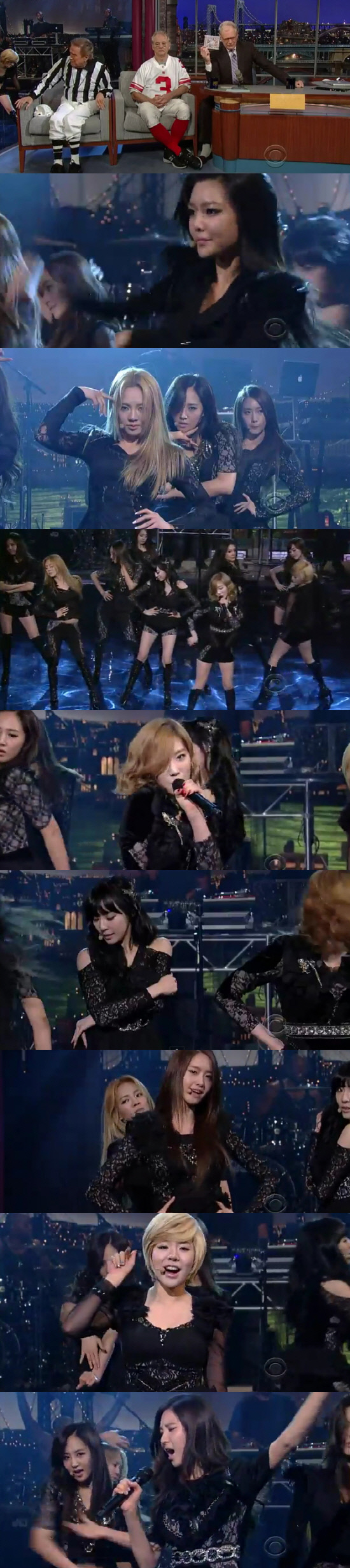 소녀시대는 지난달 31일 미국 CBS 간판 토크쇼인 '데이비드 레터맨쇼'에 출연했다. 이전에 현지 활동이 전무했음에도 미국 지상파 프로그램에 출연한 것은 한국 가수로서는 최초의 일. 때문에 출연 소식이 전해지자마자 뜨거운 관심을 받았다. 또 본방송이 끝난 뒤에는 출연 영상이 동영상 사이트 유튜브 메인 영상으로 소개되며 단 이틀만에 44만 2989건의 조회수를 기록하는 등 폭발적인 반응을 이끌어내고 있다.