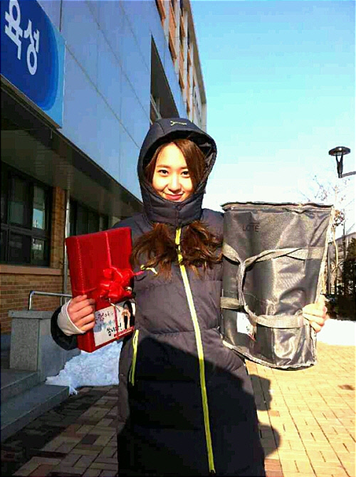 크리스탈은 지난 2일 자신의 미투데이에 '밥차도 선물도 고마워요. 맛있게 잘 먹었습니다! 오늘 정말 최고 춥던데 감기 조심하세요. 에브리바디'란 글과 함께 한 장의 사진을 올렸다.