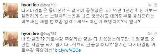 이효리는 3일 오후 자신의 트위터에 "내 단골집슌 가로수길 주얼리샵 말곤 다 처음 듣는데구만"이라며 "이런 걸로 순진한 사람들 낚지 맙시다"는 글을 게재했다.