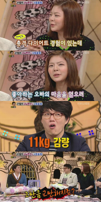 이에 게스트로 출연한 장재인 또한 "나도 충격으로 인해 살을 뺀 적이 있다"고 고백했다. 그는 "좋아하는 오빠에게 차이고 그 충격으로 11kg을 뺐다"며 "하지만 정작 살을 뺀 후에는 내 마음이 가지 않았다"고 밝혔다.