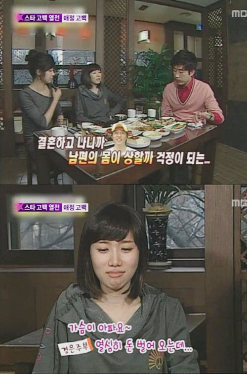 이어 그녀는 "가슴이 아프다"며 걱정을 하다가 "열심히 돈 벌어오는데"라고 너스레를 떨어 좌중을 웃게 만들었다.