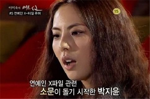 루머의 내용은 박지윤이 나이 많은 고위 간부층과 스킨십을 하다가 배설을 했다는 것. 박지윤은 아직도 자신의 연관 검색어에 그와 관련된 내용이 있다며 "진짜 루머를 생각하면 욕이 나온다. 여자로서 가장 치욕스러운 이야기였다"고 말했다.