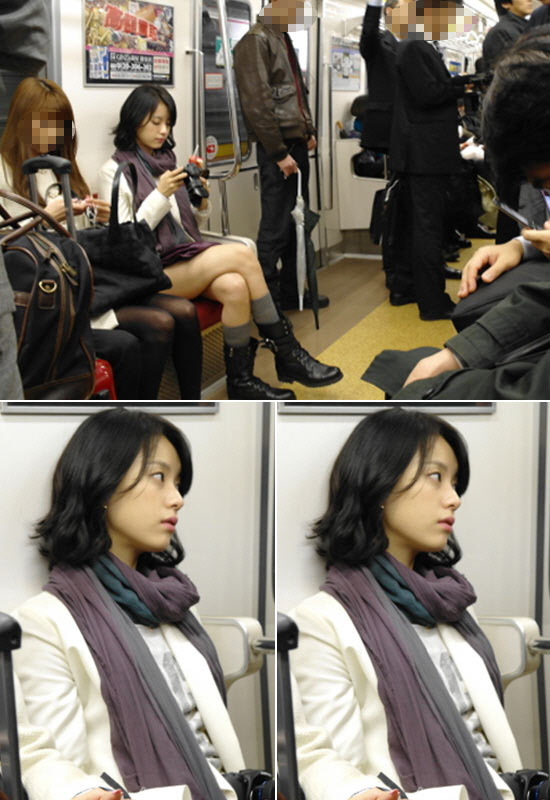 배우 한효주의 지하철 직찍 사진이 공개돼 네티즌 사이에서 화제다.