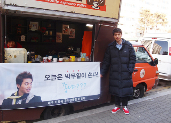 배우 이동욱이 도시락 선물은 물론 이동식 커피차까지 등장시킨 팬들의 큰 사랑에 함박웃음을 지었다.
