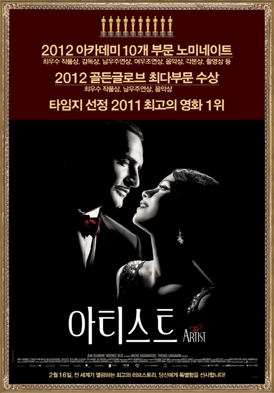 '아티스트'는 유성영화의 등장이라는 변화의 바람을 맞은 1920년대 말의 할리우드를 무대로, 무성영화계 최고의 스타였던 남자와 새로운 시대의 아이콘으로 떠오른 신인의 운명적 사랑을 그린 영화. 오는 16일 국내 개봉한다.