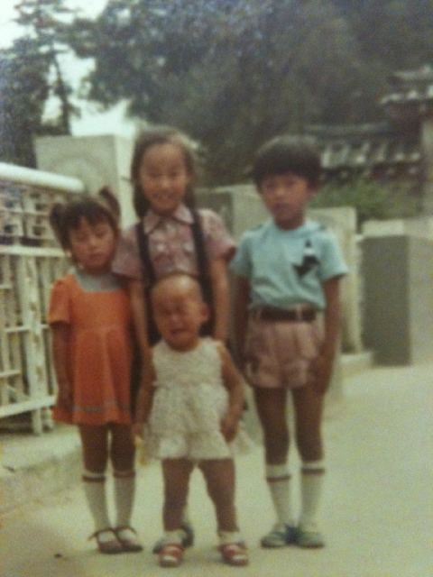 이효리는 15일 자신의 트위터에 "오랫만에 부모님 집에 갔다 옛날 사진들을 보며 한참 웃었다. 사진도 기억도 선명하진 않지만 나 이랬었구나 ㅎ. 참고로 난 막내"라며 사진 한 장을 게재했다. 공개된 사진에서 언니 오빠들 앞에 서 있는 이효리는 짧은 민소매 원피스에 레이스 양말, 샌들을 신고 울상을 짓고 있는 모습이다. 그런데 머리카락을 시원하게 잘라낸 민머리가 유독 눈에 띈다.