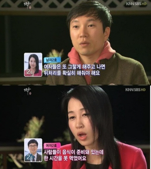 SBS '짝'에서 남자의 행동에 여자의 성격이 폭발했다.