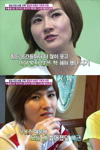 아역 출신 탤런트 이혜근이 극심한 우울증에 시달린 안타까운 사연을 털어놓았다.