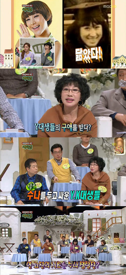 이에 MC 박미선은 "이수나씨가 고대생이었는데 교문 앞에 연대생들이 와 있었다고 한다"고 물었다.