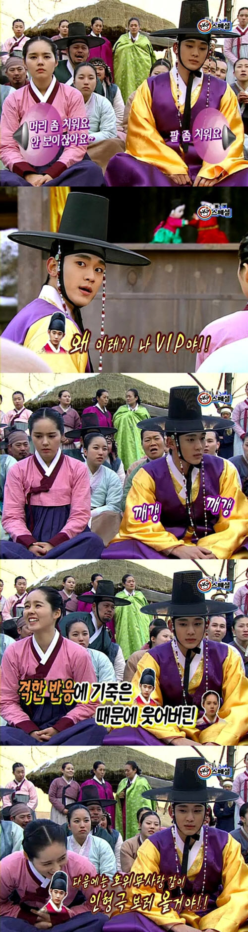 공개된 NG장면은 지난 8일 방송된 11회 일부 장면으로 이훤(김수현 분)이 잠행에 나섰다 저잣거리에서 우연히 월(한가인)을 만나 인형극을 보게 되는 촬영장면이다.