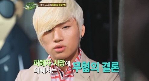 MC 이경규가 "한 사람이 목숨을 잃은 사고라 결과에 상관없이 대성 씨가 굉장한 죄책감에 시달렸을거다. 유족분들을 찾아갔었냐"고 질문하자 대성은 "일단은 찾아가는 게 맞다고 생각했지만 발걸음이 너무 무거웠다. 정리해서 말씀도 못드리고 죄송하다는 말만했다. 화도 내셨는데 당연하다고 생각한다"고 답했다.