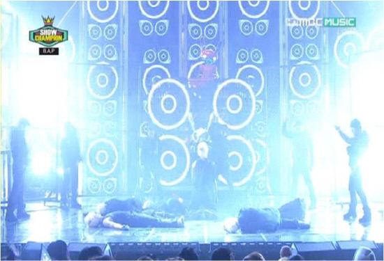 B.A.P는 데뷔곡 '워리어' 무대에서 매번 다른 엔딩 퍼포먼스를 선보이고 있다. 이들은 그동안 총에 맞아죽는 연기를 보여준 젤로를 시작으로 힘찬은 방용국의 손에 머리를 잡혀 쓰러지는 퍼포먼스를, 보컬 대현은 양팔을 붙잡혔다 던져지는 장면을 보여줬다. 이어 21일 방송된 MBC 뮤직 '쇼! 챔피언'에서는 방용국을 마지막으로 멤버 전원이 전사하는 퍼포먼스를 선사했다.