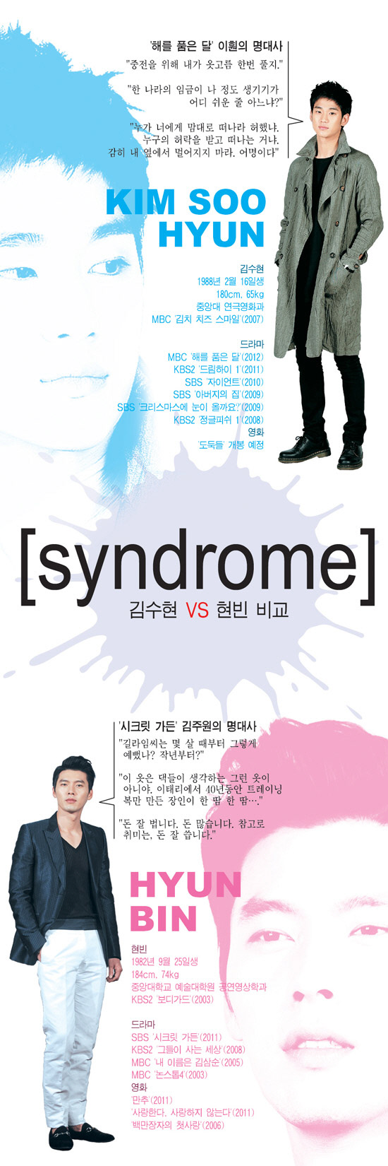 김수현도 현빈의 뒤를 이을 채비를 마쳤다. 얼마 전 의류 화보 촬영을 마친 데 이어 화장품 모델 계약을 체결했고, 검토 중인 CF 건도 여럿이다. 김수현의 소속사는 밀려드는 작품 제안에 말 그대로 '패닉' 상태에 빠지기 직전이다. 사극부터 로맨틱 코미디, 스릴러, 액션, 청춘물, 심지어 저예산 독립영화까지, 제안받은 작품의 장르와 역할도 이전보다 훨씬 다양하다. 김수현의 소속사 관계자는 "'드림하이' 이후에도 김수현이 큰 주목을 받았지만, 체감 인기는 지금이 더 큰 것 같다. 당시에는 '드림하이'처럼 주인공이 여럿인 작품이나 청춘물을 많이 제안 받았다면, 지금은 원톱 주연작도 많고 남성적 매력을 어필할 수 있는 작품이 더 늘어났다는 점에서 크게 달라졌다. 영화계의 유명 연기파 배우 선배들과 함께 출연할 수 있는 작품도 몇몇 있어 관심을 갖고 있다"고 밝혔다. 당장은 '해품달' 촬영이 바빠 시나리오와 시놉시스 등을 검토할 여유가 없지만, 드라마가 종영한 이후에 신중하게 차기작을 결정한다는 계획이다.