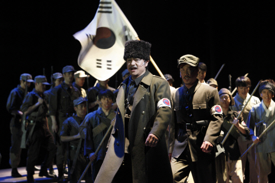 드라마는 김좌진(이정열)과 그를 쫓는 일본장교 하세가와 대좌(문종원)의 갈등과 대립을 축으로 전개된다. 김좌진은 일본에 대한 적개심에 불타는 냉철한 항일 투쟁의 지도자이고, 사무라이를 연상시키는 하세가와는 제국주의의 맹목적인 전도사다. 두 배우가 뿜어내는 강렬한 에너지가 일품이다. 이따금 하세가와의 카리스마가 더 돋보이기는 하지만, 두 배우가 든든히 중심을 잡아주는 덕분에 처음부터 끝까지 무대에서 눈길을 뗄 수가 없다.
