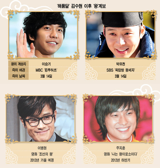 이어 "'해를 품은 달'이 큰 성공을 거둠에 따라 앞으로도 왕 캐릭터를 내세운 작품이 심심찮게 등장할 것으로 보인다"고 전망했다.