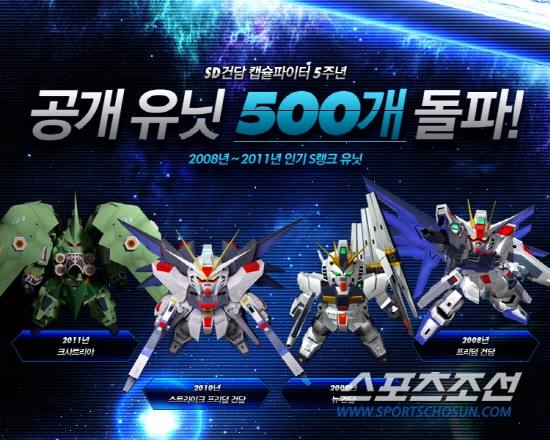 2007년부터 서비스를 시작한 이후 5년간 이용자들에게 가장 많은 사랑을 받은 게임 내 유닛은 보유대수 기준으로 S랭크 '프리덤 건담', A랭크 '스트라이크 건담', B랭크 '시구', C랭크 'M1어스트레이'인 것으로 나타났다. 또 연도별 가장 인기 있었던 유닛(S랭크)으로는 2011년 '크샤트리야', 2010년 '스트라이크 프리덤건담', 2009년 '뉴 건담', 2008년 '프리덤 건담'이 차지했다.