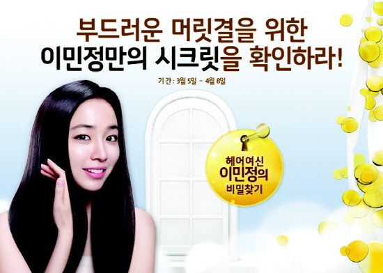 이번 이벤트는 이민정의 뷰티 시크릿 노하우를 확인하고, 도브 너리싱 오일 케어 체험 기회도 얻을 수 있는 행사다. 두 개로 구성된 이벤트의 첫 번째 미션은 '이민정의 비밀의 문을 찾아라'로, 사이트에 마련된 세 가지의 방 중 이민정이 숨어 있는 비밀의 문을 찾은 후 암호를 입력하고 방 안에 준비된 퀴즈를 맞히는 것. 두 번째는 부드러운 머릿결을 유지하는 '이민정의 헤어 케어 시크릿을 확인'하는 미션이다. 이민정의 은밀한 샤워실에서 그녀의 헤어 케어 시크릿을 확인하면 참여가 완료된다.