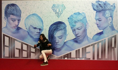 신비로우면서 묘한 분위기를 자아내는 빅뱅의 콘서트 포스터 앞에서 깜찍한 포즈로 인증샷을 남긴 산다라박은 같은 소속사 가수를 챙기는 따뜻한 동료애를 보여 눈길을 끈다.