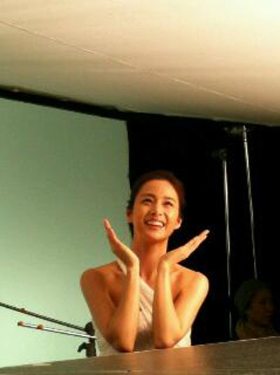 배우 김태희가 애교 넘치는 포즈로 남성팬들의 마음을 설레게 했다.