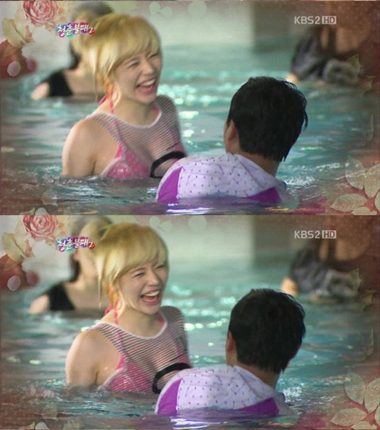 그 중 눈길을 끈 것은 바로 볼륨감 넘치는 써니의 비키니 몸매. 핑크색 홀더넥 비키니를 입고 등장한 써니는 살짝 보이는 가슴라인과 뽀얀 속살로 숨겨있던 섹시미를 발산해 눈길을 끌었다.