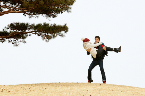 배우 하석진이 산 정상에서 서우를 번쩍 든 채 다정한 모습을 연출했다.