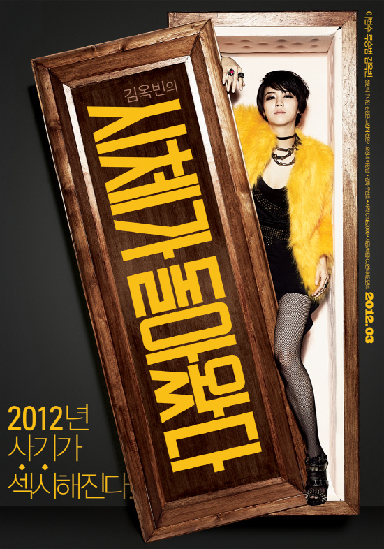 '시체가 돌아왔다'의 김옥빈 역시 늘씬한 각선미로 시선을 사로잡는다. 김옥빈은 노란색 의상과 망사스타킹으로 포인트를 줬다. 또 도도한 표정과 짙은 화장, 화려한 액세서리로 섹시한 느낌을 더했다. 관 속에서 포즈를 취하고 있는 김옥빈의 모습은 신비스러우면서도 으스스한 분위기를 풍겼다. '2012년 사기가 섹시해진다'는 카피는 이 포스터가 표현하고자 하는 바를 직설적으로 나타낸다.