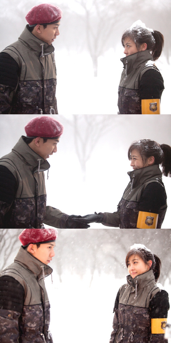 '더킹 투하츠' 3회 방송분에서는 하지원과 이승기가 하얗게 눈이 덮인 설원에서 서로를 지긋이 응시하고 있는 장면이 담겨진다. 머리 위에 소복이 눈을 얹고 있는 하지원의 묘한 표정과 그런 하지원과 서로 눈빛을 보며 마주 서 있는 이승기의 모습이 눈길을 모은다.