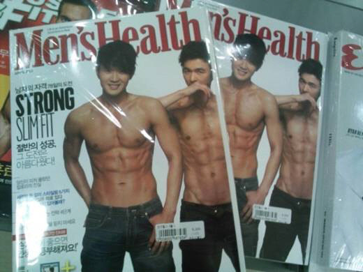 개그맨 김국진과 윤형빈이 잡지 메인 모델로 '식스팩 복근'을 드러냈다.