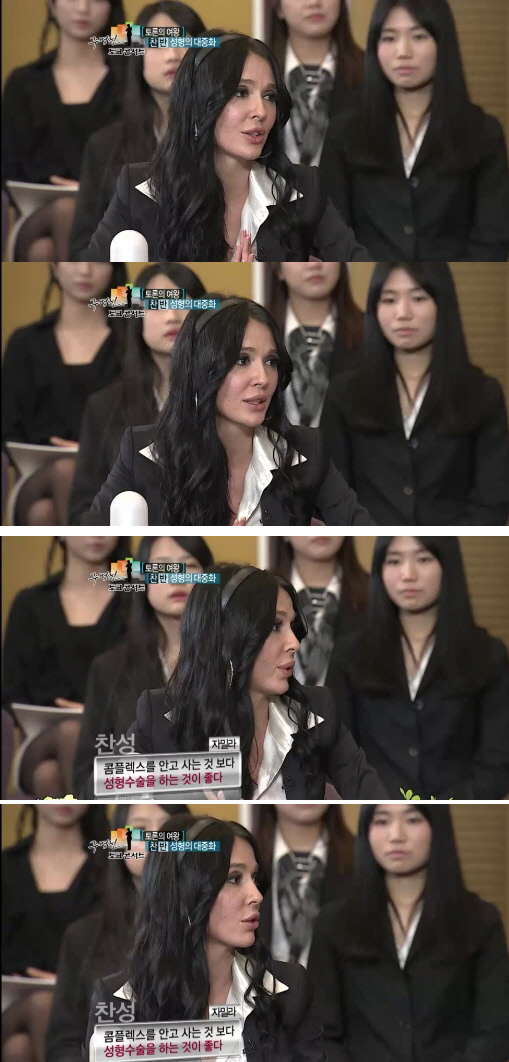 한편 이날 자밀라는 "컴플렉스를 안고 사는 것보다는 성형수술을 하는 것이 낫다고 생각한다. 나 역시 낮은 코를 성형하고 싶다"고 밝혀 주변을 놀라게 했다.