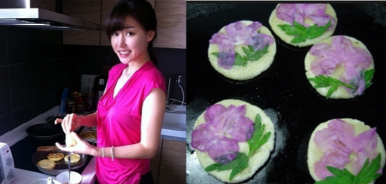 배우 공현주가 삼짇날 전통음식인 진달래 화전 만들기에 도전했다.