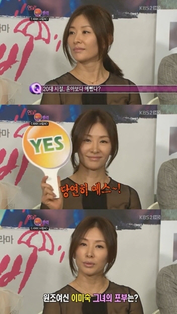 중견 연기자 이미숙이 "20대 시절 소녀시대 윤아보다 예뻤다"고 윤아 앞에서 당당히 말해 화제다.