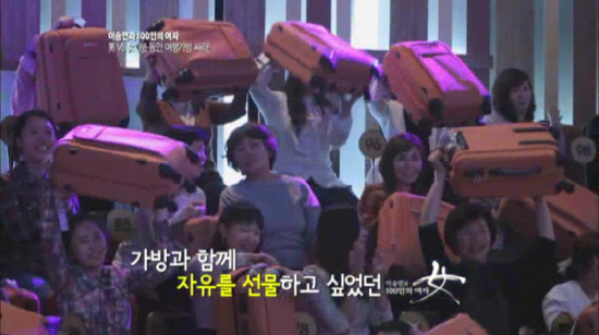 이번 여행은 왕복 국제선 항공권과 숙박, 식사 등 제반 사항이 풀 패키지로 구성돼 총 2억 원 상당에 달한다. 반복되는 일상 속 가사와 육아에 지쳐있던 100인의 여자는 스튜디오가 떠나가라 환호하며 이승연에게 열렬한 호응을 보냈다는 후문.