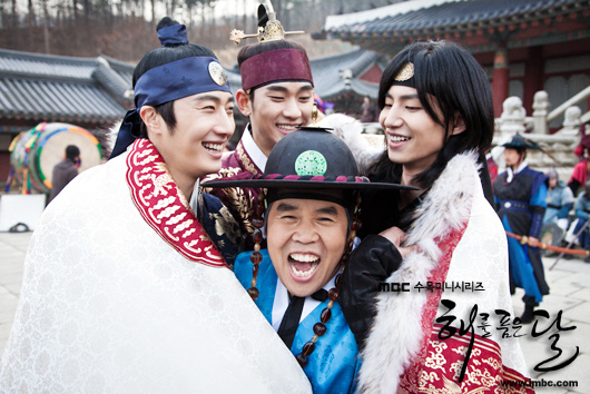 '해품달'에서 가장 사랑받은 '삼각관계'가 바로 훤, 형선, 운검의 조합. 훤과 연우의 로맨스 못지 않게 가슴 떨렸다는 팬들도 많다. 얘기만 꺼내도 빙긋 웃으며 목소리가 커지는 걸 보니 김수현도 무척이나 좋아했던 것 같다. "항상 같이 붙어 있었기 때문인지 정은표 선배님과 송재림 형은 제게 정말 각별했어요. 두 분에게서 받는 에너지가 정말 대단했죠. 혼자서는 몰입이 잘 안 되다가도 형선, 운검과 눈빛만 마주치면 바로 감정이 잡히더라고요. 어디에 있든 서로가 서로에게 큰 의지가 됐어요." 셋의 끈적한 호흡은 카메라 밖에서도 이어졌다. 형선이 촬영소품인 상소문으로 훤의 어깨를 딱딱 두들겨주면 훤이 '이것의 용도는 안마기인 게로구나'라고 화답하고, '대체 여기엔 뭐라고 써 있는 것이냐'라고 훤이 물으면 운검이 '사용설명서'라고 냉큼 받아치는 식이다. "말도 안 되는 '말장난'이지만, 촬영을 하는 동안 정말 큰 힘이 됐어요." 김도훈 PD의 마지막 '컷' 소리에 펑펑 울어버린 것도 그런 소중한 추억이 떠올라서였다.