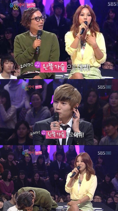 이어 올해로 데뷔 6년째가 됐다는 케이윌의 말에 이효리는 "데뷔곡이 '왼쪽가슴' 맞죠?"라고 묻자 케이윌은 "맞다. R&B 풍의 발라드 곡이었다"고 답하며 자신의 데뷔곡에 대해 설명했다.