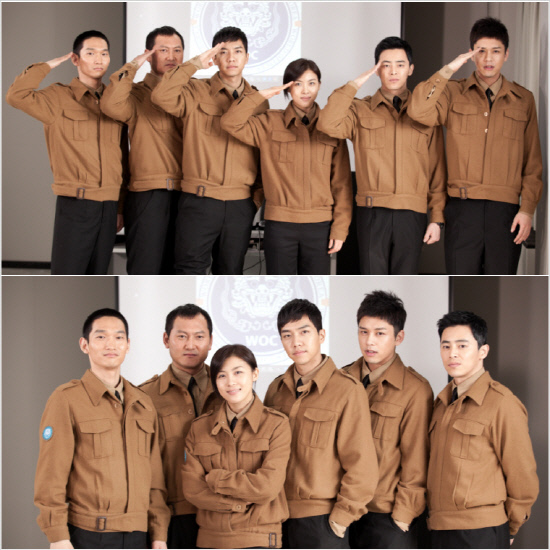 이 드라마에서 하지원, 이승기, 조정석, 최권, 권현상은 남한과 북한의 대표 자격으로 남북단일팀에 합류, 세계장교대회(WOC)에 참가하고 있다. 생사고락을 함께 하고 있는 여섯 사람은 드라마 속에서는 티격태격 신경전을 펼치기도 하지만, 카메라 밖에서는 진짜로 단일팀이라도 된 듯 유난히 화목하다는 후문이다. 이번에 공개된 기념 사진도 지난 7일 강화도에서 진행된 촬영 후에 화기애애한 분위기 속에서 찍었다. 이재규 PD가 "언제 이런 기념사진을 찍어보겠냐. 다 같이 모여 한 장 찍어놓자"고 제안하자, 자신들끼리 머리를 맞대고 포즈를 상의하는 등 남다른 호흡을 보여주기도 했다고.