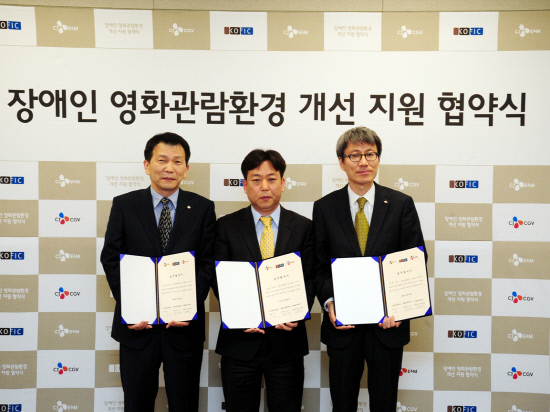CJ CGV가 영화진흥위원회, CJ E&M과 '장애인의 영화 관람환경 개선'을 위한 업무협약(MOU)을 체결했다.