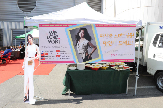 권유리는 SBS 월화극 '패션왕'에서 매력적인 패션디자이너 최안나 역을 맡아 베테랑 연기자들도 소화하기 힘든 영어 대사에 감정이입까지 추가하며 화려한 연기자 신고식을 치르고 있다. 이에 팬들도 그녀를 적극 응원하고 나섰다. 그 첫 번째 행보로 권유리와 함께 촬영에 여념이 없는 제작진들을 위해 점심 밥차를 마련한 것.